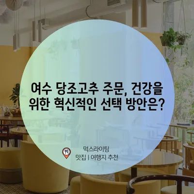 여수 당조고추 주문, 건강을 위한 혁신적인 선택 방안은?