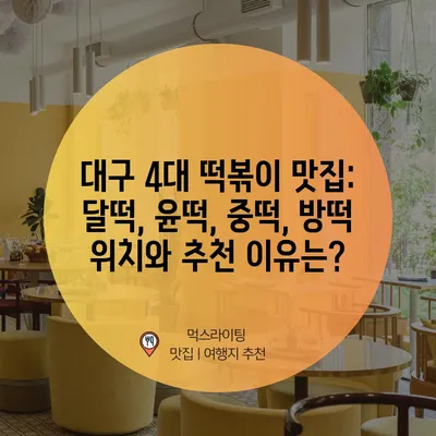 대구 4대 떡볶이 맛집: 달떡, 윤떡, 중떡, 방떡 위치와 추천 이유는?