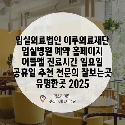 임실의료법인 이루의료재단 임실병원 예약 홈페이지 어플앱 진료시간 일요일 공휴일 추천 전문의 잘보는곳 유명한곳 2025