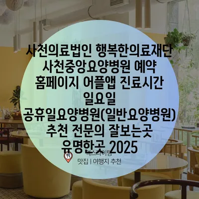 사천의료법인 행복한의료재단 사천중앙요양병원 예약 홈페이지 어플앱 진료시간 일요일 공휴일요양병원(일반요양병원) 추천 전문의 잘보는곳 유명한곳 2025