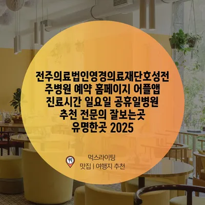 전주의료법인영경의료재단호성전주병원 예약 홈페이지 어플앱 진료시간 일요일 공휴일병원 추천 전문의 잘보는곳 유명한곳 2025