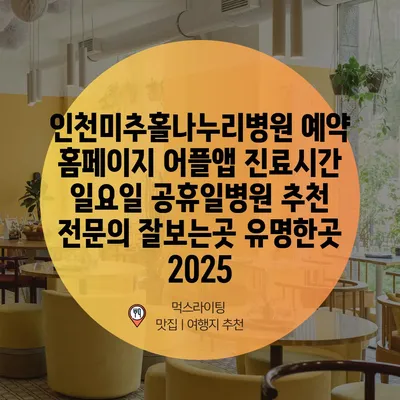 인천미추홀나누리병원 예약 홈페이지 어플앱 진료시간 일요일 공휴일병원 추천 전문의 잘보는곳 유명한곳 2025