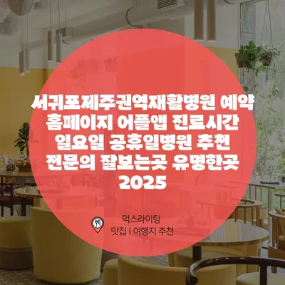 서귀포제주권역재활병원 예약 홈페이지 어플앱 진료시간 일요일 공휴일병원 추천 전문의 잘보는곳 유명한곳 2025