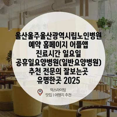 울산울주울산광역시립노인병원 예약 홈페이지 어플앱 진료시간 일요일 공휴일요양병원(일반요양병원) 추천 전문의 잘보는곳 유명한곳 2025