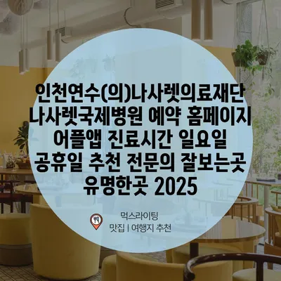 인천연수(의)나사렛의료재단 나사렛국제병원 예약 홈페이지 어플앱 진료시간 일요일 공휴일 추천 전문의 잘보는곳 유명한곳 2025
