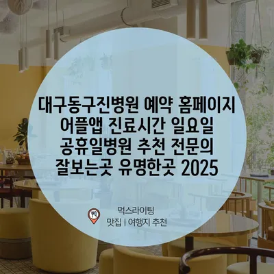 대구동구진병원 예약 홈페이지 어플앱 진료시간 일요일 공휴일병원 추천 전문의 잘보는곳 유명한곳 2025