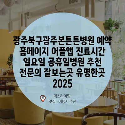 광주북구광주본튼튼병원 예약 홈페이지 어플앱 진료시간 일요일 공휴일병원 추천 전문의 잘보는곳 유명한곳 2025