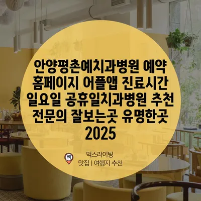 안양평촌예치과병원 예약 홈페이지 어플앱 진료시간 일요일 공휴일치과병원 추천 전문의 잘보는곳 유명한곳 2025
