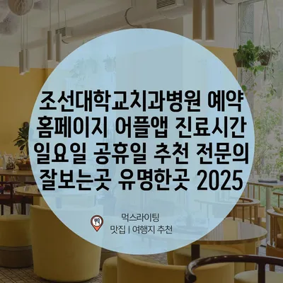 조선대학교치과병원 예약 홈페이지 어플앱 진료시간 일요일 공휴일 추천 전문의 잘보는곳 유명한곳 2025