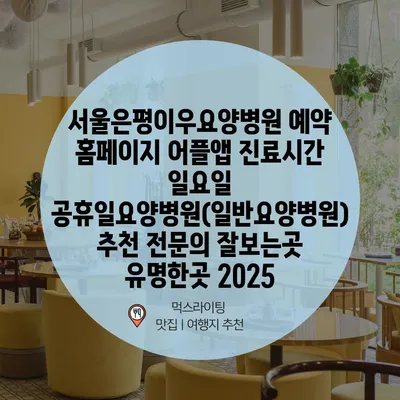 서울은평이우요양병원 예약 홈페이지 어플앱 진료시간 일요일 공휴일요양병원(일반요양병원) 추천 전문의 잘보는곳 유명한곳 2025