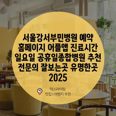 서울강서부민병원 예약 홈페이지 어플앱 진료시간 일요일 공휴일종합병원 추천 전문의 잘보는곳 유명한곳 2025