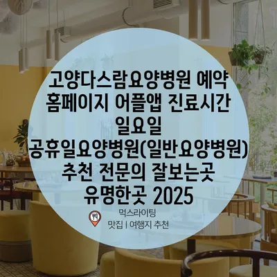 고양다스람요양병원 예약 홈페이지 어플앱 진료시간 일요일 공휴일요양병원(일반요양병원) 추천 전문의 잘보는곳 유명한곳 2025