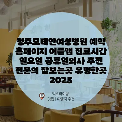 청주모태안여성병원 예약 홈페이지 어플앱 진료시간 일요일 공휴일의사 추천 전문의 잘보는곳 유명한곳 2025