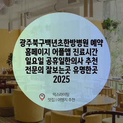 광주북구백년초한방병원 예약 홈페이지 어플앱 진료시간 일요일 공휴일한의사 추천 전문의 잘보는곳 유명한곳 2025