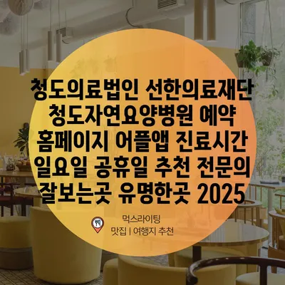 청도의료법인 선한의료재단 청도자연요양병원 예약 홈페이지 어플앱 진료시간 일요일 공휴일 추천 전문의 잘보는곳 유명한곳 2025