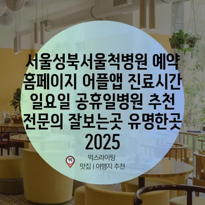 서울성북서울척병원 예약 홈페이지 어플앱 진료시간 일요일 공휴일병원 추천 전문의 잘보는곳 유명한곳 2025