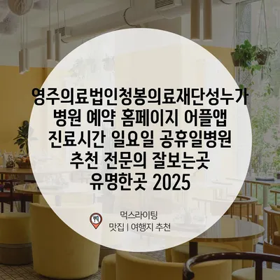 영주의료법인청봉의료재단성누가병원 예약 홈페이지 어플앱 진료시간 일요일 공휴일병원 추천 전문의 잘보는곳 유명한곳 2025