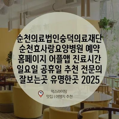 순천의료법인숭덕의료재단 순천효사랑요양병원 예약 홈페이지 어플앱 진료시간 일요일 공휴일 추천 전문의 잘보는곳 유명한곳 2025