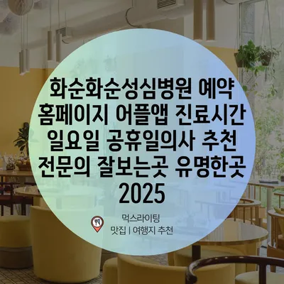 화순화순성심병원 예약 홈페이지 어플앱 진료시간 일요일 공휴일병원 추천 전문의 잘보는곳 유명한곳 2025